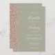 A margem esquerda deste elegante convite de casamento moderno apresenta um rosa dourado faux glitter design. O texto personalizável combina manuscrito de marfim, fontes em copperplate e itálico em um fundo verde de sábio. O verso apresenta um design brilhante verde-sábio e rosa.