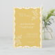 Celebre seu dia especial com este convite de casamento moderno, com uma fronteira ondulada desenhada à mão e bordas balançadas à mão. O design lúdico é aprimorado com elementos botânicos delicados e listras retrógradas, enquadradas em um layout de escala de cores na moda Yellow. Este convite combina elegância moderna com charme vintage — perfeito para casais que buscam algo único, mas eterno. Todo o texto é totalmente personalizável, permitindo que você altere fontes, cores e detalhes do casamento para se adequar ao seu estilo pessoal. Disponível em várias variações de cor para corresponder perfeitamente ao seu tema.