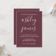 O convite de casamento simples e chic apresenta uma caligrafia branca elegante escrita à mão e uma tipografia moderna num fundo de burgundy. Basta adicionar os detalhes do seu casamento. Desenvolvido exclusivamente para você pelo Happy Dolphin Studio. Se precisar de ajuda ou produtos correspondentes, entre em contato conosco em happydolphinstudio@outlook.com. Estamos felizes em ajudá-lo a fazer seu casamento o dia mais bonito!