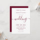 A simplicidade é muitas vezes a melhor escolha. Convide sua família e amigos para o seu casamento com os convites de casamento de burgundy minimalistas com caligrafia moderna. Itens correspondentes disponíveis.