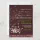 Flores de dandelion brilhantes no campo noturno cor de burgundy ilustradas nos Formal Wedding Invices. A rica cor de vinho burgundy no fundo e as flores de dandelion brilhantes criam uma aparência adorável e romântica que é maravilhosa para um CASAMENTO DO PAÍS CHEIO | CASAMENTO BOTÂNICO ELEGANTE | CASUAL BACKYARD | CASAMENTO ROMÂNTICO DE MEADOW OU CASAMENTO DE COR DE BURGUNDY! ((Você pode encontrar os essenciais de casamento e favores nesta loja, Bridal Heaven. Entre em contato com ujean4791@gmail.com para obter trabalho personalizado e/ou material de papelaria de casamento correspondente.)