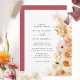 Aprecie seu convidado com este belo convite para o casamento. Cheio simples e limpo de elegância e graça com detalhes florais requintados de cor d'água em uma fina mistura de pêssego, laranja, rosa pincelado, rosa empoeirado, champanhe e creme Capacidade de mudar "junto com seus pais" para "junto com suas famílias", "junto com a alegria do excelente" ou "junto com o prazer do excelente". Capacidade de editar o design usando a ferramenta design, usando o botão no final das caixas de texto modelo e fazer alterações na posição do texto, no estilo da fonte ou no tamanho. Volte na cor de fundo burgundy que pode ser alterada para qualquer outra cor que você quiser selecionando o botão "editar usando a ferramenta design". Na moda e design elegante com flores delicadas e detalhes da grama de pampas. Parte da nossa coleção "Peach Floral Delight and Burgundy" com uma variedade de produtos de coordenação disponíveis. Visite a coleção inteira em: https://www.zazzle.com/collections/peach_floral_delight_with_burgundy-119085236838576621