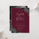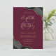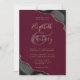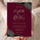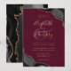 Uma design de agate de cor-de-água preta, aparada com brilho sujo de ouro, aparece em dois cantos deste elegante design. Personalize-o com os nomes dos casais em um guião de escrita manual dourada sobre um grande e grande. Adicione os detalhes do casamento em um prato de cor dourada e fontes itálicas em um fundo burgundy. O verso apresenta um design de agate preto e dourado correspondente.