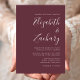 Este simples convite de casamento moderno mostra um texto branco sobre um fundo burgundy. Adicione os nomes da noiva e do noivo na caligrafia de escrita manual do na moda e os detalhes na fonte sans serif. O lado inverso é uma sombra de burgundy sólida.