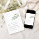 Convide seus amigos e entes queridos para comemorar seu dia especial com este convite de casamento moderno, mínimo, e simplesmente chic olive branch. Este design apresenta folhas de aquarelas sobre um simples fundo branco com tipografia de cinzas profundas.