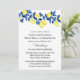 Capture a essência de uma celebração de verão fresca e alegre com este elegante convite de casamento de brunch de verão com tema de limão cítrico, projetado para trazer luz solar e sofisticação ao seu dia especial. Com uma borda de aquarela perfeita de limões amarelos vibrantes combinados com folhas azuis suaves no topo, este design reflete perfeitamente as tendências estéticas de casamentos de verão, como temas cítricos, detalhes inspirados no Mediterrâneo e paletas de cores leves e arejadas. O verso apresenta um belo padrão contínuo de limões e motivos de azulejos azuis clássicos, adicionando um toque refinado e de alta qualidade que se sente moderno e atemporal - perfeito para casais que planejam um casamento de brunch, um casamento no jardim ou uma celebração de destino.