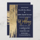 Convites Casamento de Brushstrokes Simples Douradas Azuis d