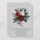Este convite de casamento apresenta um buquê floral de aquarela em burgundy, vermelho e verde. Contacte-me se pretender ajudar a personalizar este convite.