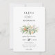 Um convite de casamento botânico moderno e elegante. Belo buquê de laranja de pêssego e flores de lírio de marfim com verde-claro e verde-claro. Coordenando o suporte de cor verde. O convite apresenta uma combinação de estilos de tipografia quic design da caligrafia e do tipo negrito.