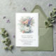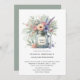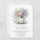 Este convite de casamento rústico irradia a elegância do campo com sua aquarela macia ilustrando um bronzeamento de pedras com flores silvestres em tons de rosa, roxo e creme, acentuados por uma exuberante vegetação. O estilo pintado à mão dá um toque gentil e romântico, enquanto o jarro de mason evoca um senso de charme vintage e de calor caseiro. Equilibrado e arejado, o design se sente perfeito para uma celebração de vinhedo ou jardim — convidando convidados para um dia cheio de amor, natureza e simplicidade sincera. Personalize o rótulo no frasco e o resto do convite.
