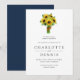 Convite de casamento elegante com um buquê de girassol de cor d'água e um marinho azul de volta.
