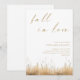 Celebre o seu amor com o nosso Dourado Convite de Casamento "Cair no Amor". Apresentando a frase romântica "Cair no Amor" em uma elegante escrita em ouro, este convite exumenta luxo e charme. Personalizada com seus nomes, data de casamento, local, detalhes de RSVP e outras informações essenciais em tipografia de ouro sofisticada em um fundo branco pristino, ela combina elegância moderna com charme rústico. Os sotaques sutis de grama seca no fundo evocam o calor e a beleza do outono, fazer perfeito para casais que buscam um na moda e um convite memorável que reflita a estação e sua história de amor única.