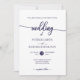 Convite De Casamento De Caligrafia Branca E Azul De Marinho Elegante