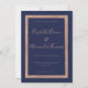 Um elegante e rosa de ouro caligrafia caligrafia manuscrita, no fundo azul do marinho na moda e nos convites clássicos de casamento de quadro rosa-ouro.
