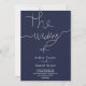 Convites Casamento de Caligrafia Branca Azul, Marinho Simpl
