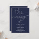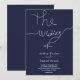 Este elegante convite de casamento azul marinho é perfeito para um casamento moderno. o simples design apresenta uma caligrafia branca elegante num fundo azul.
