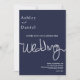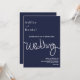 Este elegante convite de casamento azul marinho é perfeito para um casamento moderno. o simples design apresenta uma caligrafia branca elegante num fundo azul.
