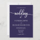 Convite De Casamento De Caligrafia Branca E Azul De Marinho Elegante