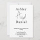 Este elegante convite de casamento preto e branco é perfeito para um casamento moderno. o simples design apresenta uma caligrafia negra elegante em um fundo branco.