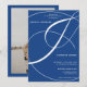 Chic e elegante cor azul do ano e convite de casamento para caligrafia branca com e ampersand florescente, adicione sua foto. Com um belo roteiro de caligrafia.