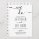 Escrita cursiva caligrafia de estilo manuscrito, convite de casamento preto e branco. O dorso inclui um padrão geométrico preto e branco.