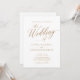 Todos em um convite para casamento Dourado e branco para caligrafia elegante com detalhes sobre código QR atualizado e anterior... Nosso convite de casamento exclusivo "All in One" contém elegante caligrafia de manuscrito de ouro combinado com texto de serifa para um convite de casamento clássico e elegante. A parte traseira do convite contém todos os detalhes que você normalmente veria em cartões separados no pacote de casamento, incluindo tempo e local de recepção, opções de alojamento, site de casamento, RSVP e informações de registro de presentes. Este convite de casamento ao estilo moderno foi concebido para ser elegante e consciente do orçamento... para não mencionar a poupança de tempo para as famosas noivas. No verso há também um exemplo de modelo gráfico de código QR que você pode substituir por seu próprio código no modelo de personalização, digitando apenas o URL do seu site de casamento. Todo o texto de exemplo (além dos elementos de caligrafia gráfica) pode ser facilmente revisado com suas próprias informações sobre o mesmo modelo de personalização.