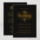 Este elegante convite de casamento preto e ouro é perfeito para um casamento moderno. O simples design apresenta uma elegante caligrafia dourada sobre fundo preto. O cartão de convite inclui os detalhes do casamento no verso, em vez de pagar um cartão separado.