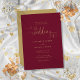 Este elegante convite para o casamento pode ser personalizado com os detalhes de sua celebração em tipografia de ouro em chic em um fundo de burgundy. Projetado por Thisnotme©