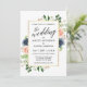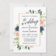Roteiro Moderno de Caligrafia, Elegante Aquarela Eucalyptus Greenery Roses Rosa Dusty Rosas Azul Frame Convite para Casamento - Escamudo Rosa