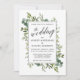 Caligrafia moderna Aquarela O convite para o casamento vegetativo inclui belos verdes botânicos e folhas de eucalipto.