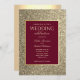 Convites Casamento de Caligrafia Glitter Dourado Borgonha