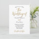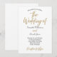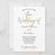 Um convite de casamento com um design moderno minimalista com texto falsa de caligrafia dourada.