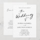 Tudo em um código QR RSVP Chic Clorografia Negra Moderna de Caligrafia Negra Script Negra e Branca Convite... Nosso convite de casamento preto e branco, minimalista, apresenta um roteiro de caligrafia moderno combinado com texto serif e sans serif para um convite de casamento simples e chic. A parte traseira do convite também exibe o código QR do seu site de casamento, assim como o próprio URL do site, permitindo que seus convidados RSVP online sejam facilmente visualizados e todos os detalhes normalmente enviados em um pacote de casamento. Este convite de casamento ao estilo moderno foi concebido para ser simultaneamente respeitador da moda e do orçamento... bem como para poupar tempo. O exemplo de gráfico de código QR e todo texto de exemplo (além dos elementos de caligrafia gráfica) pode ser facilmente revisado com suas próprias informações sobre o modelo de personalização.