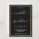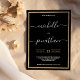 Um convite de casamento de caligrafia com escrita simples minimalista preta e dourada com texto branco. Este convite minimalista de luxo é perfeito para qualquer garota glamorosa e sofisticada. Este design é ideal para um evento de festa moderno e elegante. Desenhe com sua mensagem e informações. Todos os desenhos são impressos.