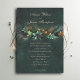 Ilustração de flores, galhos e folhagem silvestres em um arranjo de granja com sotaques dourados e luzes de fadas (são efeitos digitais!), sobre um fundo verde-esmeralda brilhante, decora este outono de verão primavera e convite ao casamento no inverno com um tema de casamento florestal encantado. Um convite elegante e moderno para um casamento de conto de fadas, é o convite perfeito para noivas que amam o cenário da floresta de conto de fadas, o tema da floresta de fadas ou do jardim de fadas e o verde esmeralda com sotaques de ouro. A caligrafia clássica contrasta com o fazer de ilustração moderno, essa design é um clássico verdadeiramente moderno.