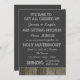Famoso e velho quadro-negro, pérolas rústicas e modelo de convite para casamento de celeiros.