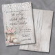 Convocação para Casamento Charme de Madeira Rustic Country. Ponha o tom para o seu dia especial com um design simples e versátil que capta maravilhosamente o charme de um casamento rústico ou de celeiro. O fundo apresenta uma textura de madeira rústica quente e branca que expele elegância natural. Lá em cima, luzes de cordas batem graciosamente através da design, adicionando um brilho suave e romântico. Os detalhes são apresentados em fontes de cinza escura, combinando caligrafia manuscrita com texto serif limpo para um eterno e aparência polida. No fundo, um jarro de mason repleto de rosas rosas rosadas e de verde de eucalipto é acompanhado por fatias de madeira rústica e velas de luz de chá, acrescentando charme sutil e aconchegante. Apesar de subestimada, esta design funciona perfeitamente para casamentos de vaqueiro ou inspirados no ocidente com um toque mais refinado. O tema madeiras rústicas continua atrás, apresentando um monograma para um acabamento coeso e pessoal. Totalmente personalizável, você pode ajustar o texto, as fontes ou o layout para se adequar ao seu estilo de casamento exclusivo. Disponível como um convite impresso ou um arquivo digital para download para e-mail ou impressão local, este design é uma maneira perfeita de anunciar seu dia especial.