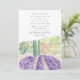 Uma bela pintura aquosa de campos de lavanda cria uma sensação romântica a este convite de casamento. Apresentando emparelhamento de fontes chic para aumentar o fator elegância. suite de casamento correspondente ao cheio disponível.