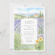 Ponha o tom para uma romântica celebração do campo francês com este convite para o casamento Provence. O trabalho de arte apresenta campos de lavanda vibrantes no cheio florescente, colinas que rodam suavemente e vilas clássicas de pedra sob um céu Provençal macio. Elementos botânicos esmagadores enquadram a cena com girassóis, lavandas e folhagem delicada. Perfeito para casamentos de destino no Sul de França ou para casais inspirados no charme russo europeu, este convite é uma introdução serena e elegante para o seu dia especial. Totalmente personalizável com seus detalhes.