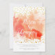 Salto de aquarela com recife de coral branco e tipografia de confete de ouro, convite personalizado para casamento na praia.