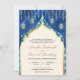 Incêndios para seus convidados com este elegante convite de casamento indiano com um belo arco decorado com cortinas e lanternas penduradas com ilustrações de casal personalizáveis em várias combinações de cores de sherwani, lehenga e turban. Basta adicionar os detalhes do seu evento neste modelo fácil de usar para torná-lo um convite de tipo único.