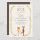 Esta encantadora coleção de convites para o casamento apresenta um casal de quadril e raposa cercado por um quadro de folhas de floresta desenhadas à mão num arranjo de coroa.
