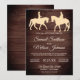 Incêndio aos seus convidados com este convite de casamento rústico que inclui um cavaleiro e uma cavaleira com tipografia moderna contra um fundo de madeira de celeiro. Basta adicionar os detalhes do seu evento neste modelo fácil de usar para torná-lo um convite de tipo único.