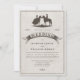 Capturar o espírito do oeste selvagem com nossa Noiva Vintage Ocidental e a Noiva do Cavalo no Convite para Casamento. Esta design única apresenta uma silhueta romântica de noiva e noiva em cavalo, com o noivo a esportar um chapéu clássico de vaqueiro. Fontes ao estilo ocidental e giros elegantes adicionam um toque de encanto rústico a este convite, fazer perfeito para casais que desejam celebrar seu dia especial com um nó nas tradições ocidentais.