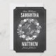 Chalkboard, cavalo de mar e conchas rusticais, tema de praia, carta de convite para casamento.