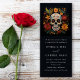 Convide amigos e família para a sua celebração de casamento com este convite de casamento estético gótico com um crânio rodeado de flores num estilo falso bordado,