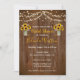 Basta inserir seus detalhes sobre este belo chá de panela rústico. A corda de areia elegante fica no topo. Buquê de girassol em jarro de mason no fundo à esquerda. Fundo de madeira de celeiro de safra. Bonita mão pintada design pela artista ©Tina Hesskew de Fisheries Hunting Life. **Por favor, encontre itens de casamento nas coleções da minha loja.