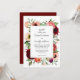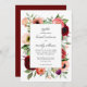 Este encantador convite de casamento estilo boho enquadra seu texto com peônias coloridas de água, rosas, anêmonas, flores silvestres e verde misto. A paleta colorida lúcida inclui tons ricos de rosa, vermelho borrado, pêssego, esbranquiçado, verde e verde. Os emparelhamentos do tipo face usados na modelo de texto transmitem seus detalhes de casamento em um estilo único com os nomes da noiva e do noivo em letra minúscula. A parte de trás do convite é uma sombra coordenadora de vermelho burgundy. Você pode personalizar a cor traseira para a cor de sua escolha selecionando "clicar para personalizar ainda mais" na parte inferior do modelo de texto e selecionando uma cor de fundo diferente. Este esquema de cores é uma escolha adequada para casamentos em qualquer estação do ano.