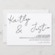 Um convite de casamento moderno, chic e elegante com nomes personalizados com caligrafia escrita à mão em preto e branco. Todas as cores de texto, nomes e fundo são personalizáveis. Um convite simples e minimalista.
