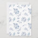 Estes elegantes, empoeirados convites para casamento de cor azul e branca apresentam um padrão floral de cor azul-aquática no verso, e caligrafia de na moda juntamente com o texto clássico na frente do convite. O design de toile azul francês acrescentará um toque romântico e chic à sua papelaria de casamento.